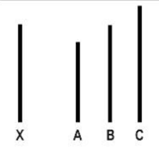 On vous montre une ligne, puis trois autres lignes de différentes longueurs. La question est simple : quelle ligne correspond à la première ?